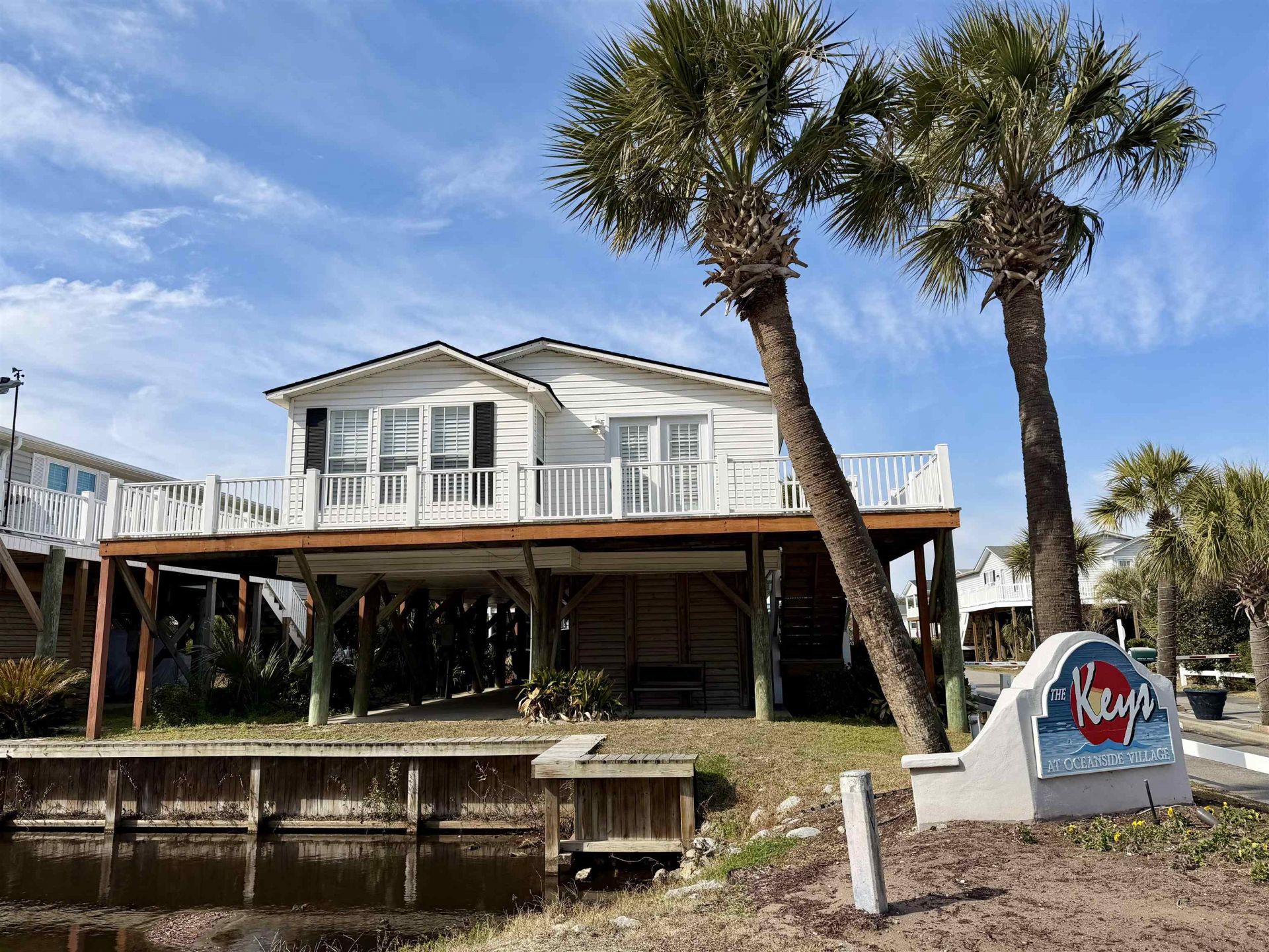 Discover the perfect blend of comfort and coastal living. Situated on a corner lot in the highly desirable Keys section of Oceanside Village. This home features a spacious open concept perfect for entertaining and everyday use. Freshly painted and brimming with natural light, this home radiates warmth from the minute you walk in. Encompassing 3 bedrooms and 2 baths. Each bedroom boasts its on sliding glass doors opening onto a wraparound deck perfect for morning coffee, or evening cocktails, with peek a boo views of the ocean. The kitchen features newer stainless appliances and updated counters. The master features an ensuite with double vanities, and a walk in shower. Updates include newer hvac, sea wall, deck, plantation blinds, newer roof with class 3 impact resistant architectural shingles with 5 Velux skylights. Skylights have 10 year no leak warranty. Residents enjoy resort-style amenities including a new indoor pool, outdoor pool, hot tub, kids splash pad, bark park, tennis, bocce ball, private beach front parking and much more. Conventional Financing
